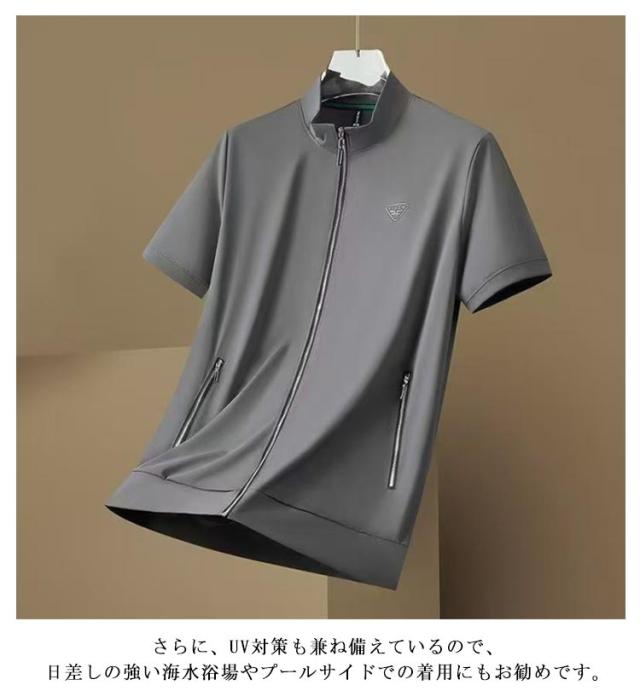 半袖 パーカー メンズ 薄手 立ち襟 UVカット 春 半袖パーカー 前開き 夏 アイスシルクパーカー 涼しい 吸汗速乾 ジップアップパーカー サマーパーカー 極薄 通気性 ストレッチ スポーツ パーカー 無地 アウター アウトドア 釣り イベント