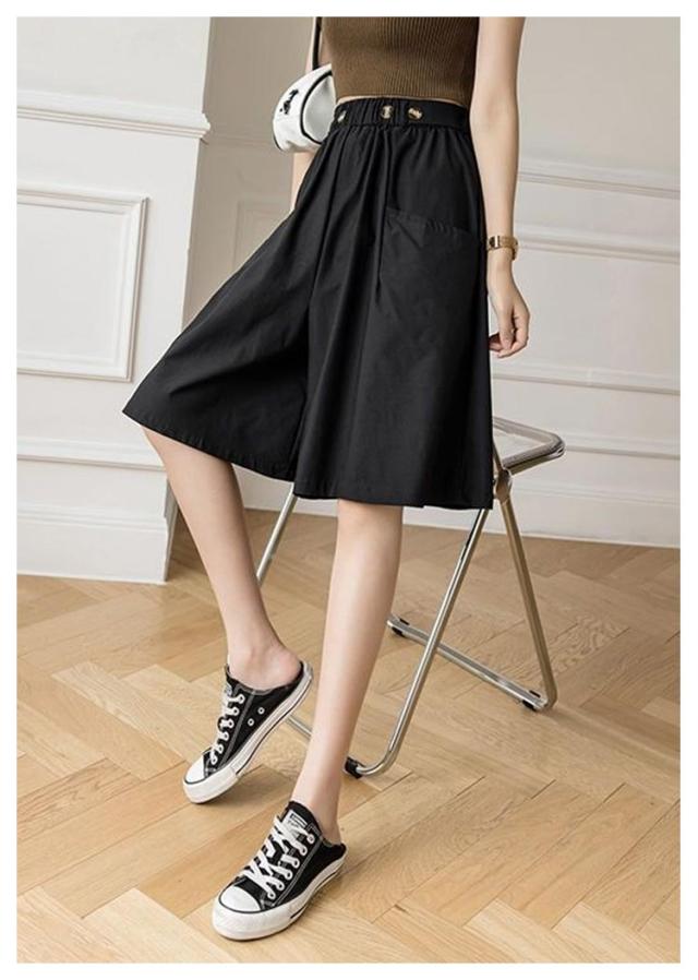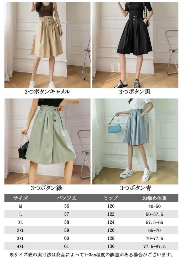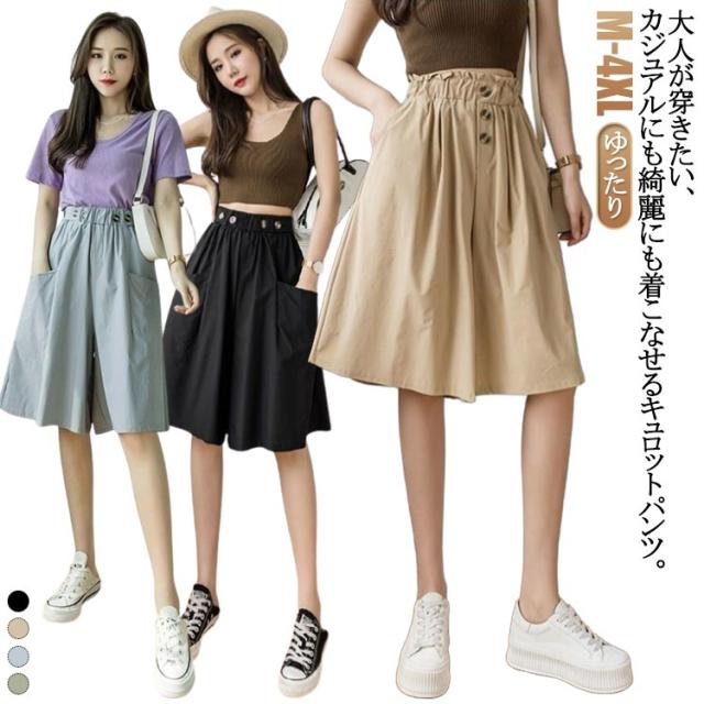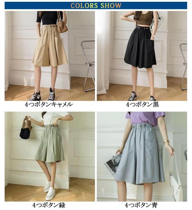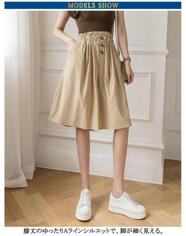 キュロットパンツ ハーフパンツ Aライン ゆったり 薄手 ウエストゴム ショートパンツ 膝丈 キュロットパンツ スカーチョ キュロットスカート お洒落 春夏 レディース ポケット付き カジュアル