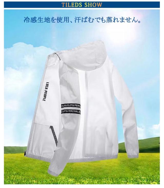UVカット パーカー ジャケット 紫外線対策 フード付き メンズ 長袖 ラッシュガード 夏用 アウター ひんやり 涼感 涼しい薄手 接触冷感 ジップアップパーカー 吸汗速乾 日焼け防止 おしゃれ ライン入り シンプル カジュアル