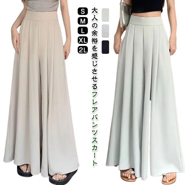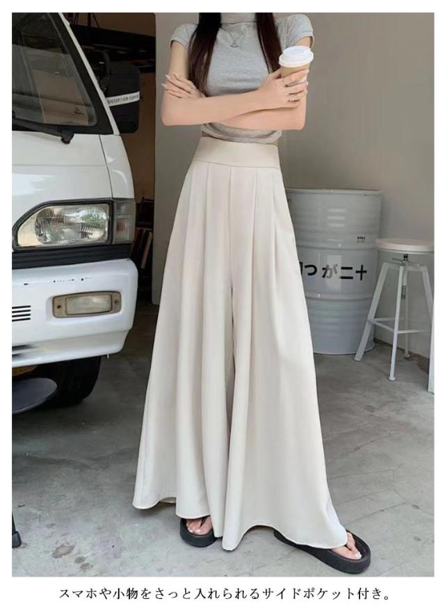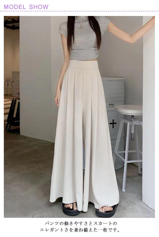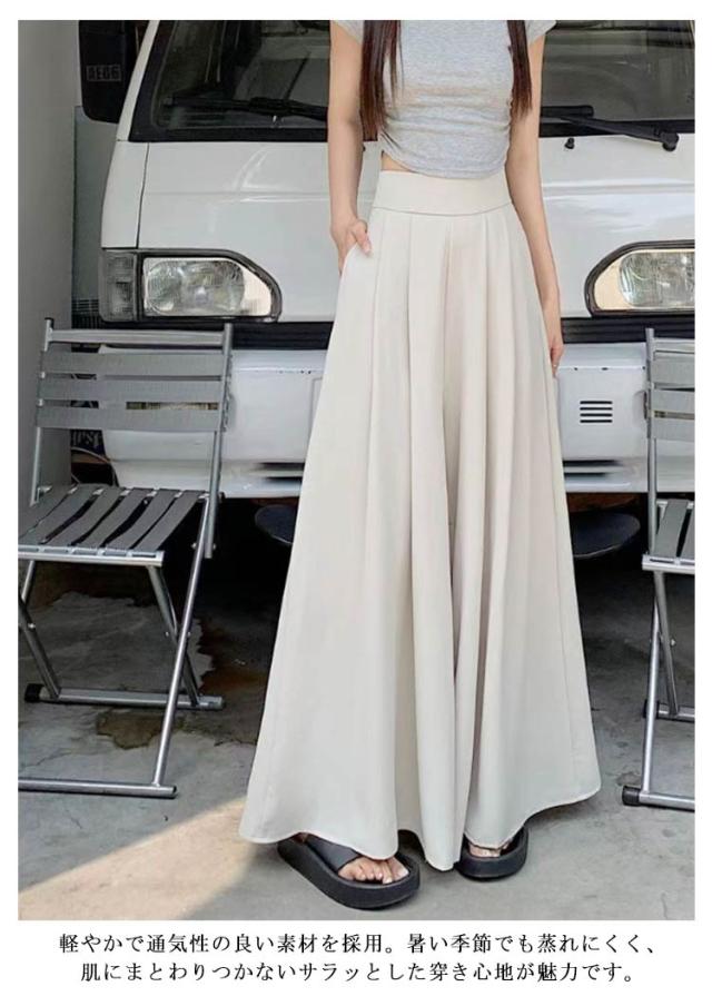 キュロット キュロット ガウチョパンツ スカーチョ パンツスカート レディース 高見え ロングパンツ 着痩せ 夏用 通勤 オフィス ゆったり 薄手 涼感 軽量 ハイウエスト ポケット付き 春夏 無地 きれいめ カジュアル
