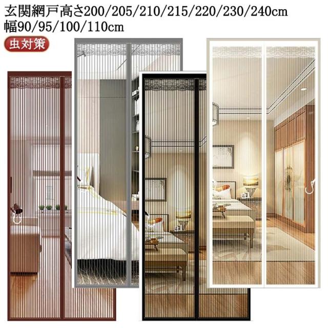 蚊帳カーテン 虫対策 カーテン式 網戸 マグネット式 幅90/95/100/110cm 玄関 暑さ対策 簡単 玄関網戸 取り付け 高さ200/205/210/215/220/230/240cm マンション 賃貸 蚊帳カーテン アミ戸カーテン