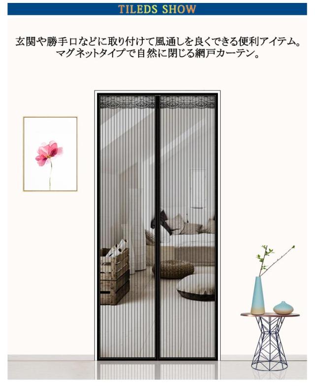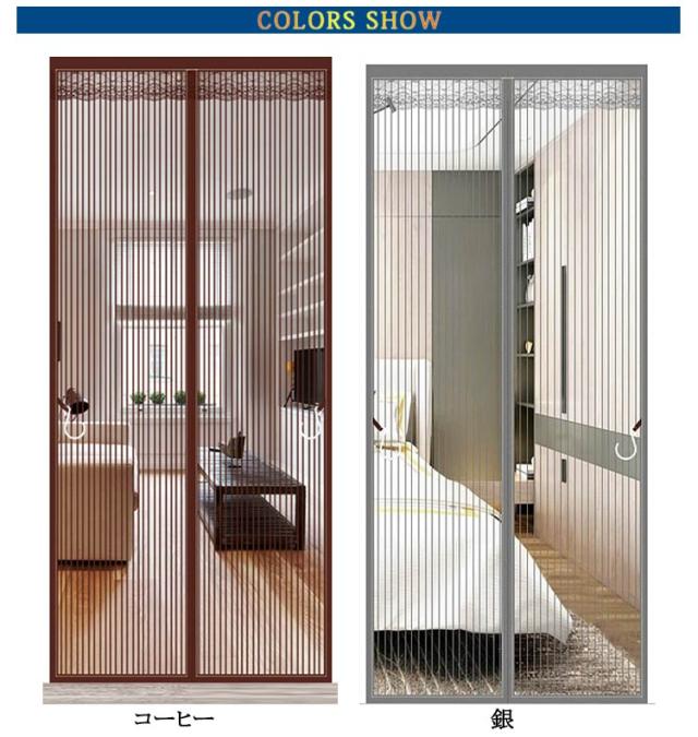 | 【玄関網戸 高さ200/205/210/215/220/230/240cm 幅90/95/100/110cm】 玄関や勝手口などに取り付けて風通しを良くできる便利アイテム マグネットタイプで自然に閉じる網戸カーテン 強力なにより、素早く自動で閉まるので、荷物で両手がふさがっている時でも便利なマグネットカーテンです。子供やペットでも簡単に通れます。 一周全てマジックテープ式です、カーテンが丈夫に固定されます。 網戸の外側に設置して虫を二重に防止し、夏でも風通しを快適に、省エネ効果も期待できます。 簡単に設置できるのも嬉しいポイント! | |