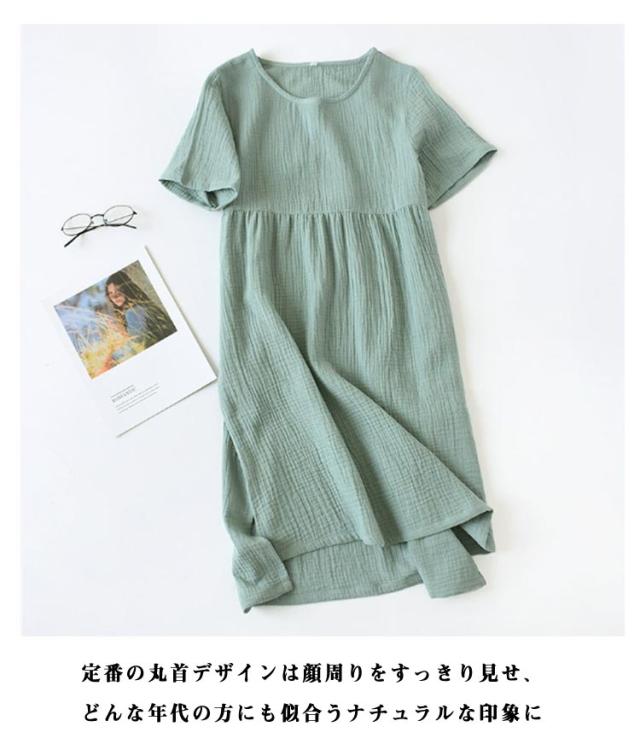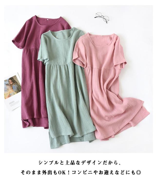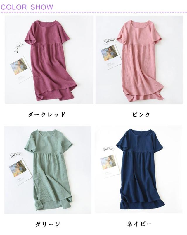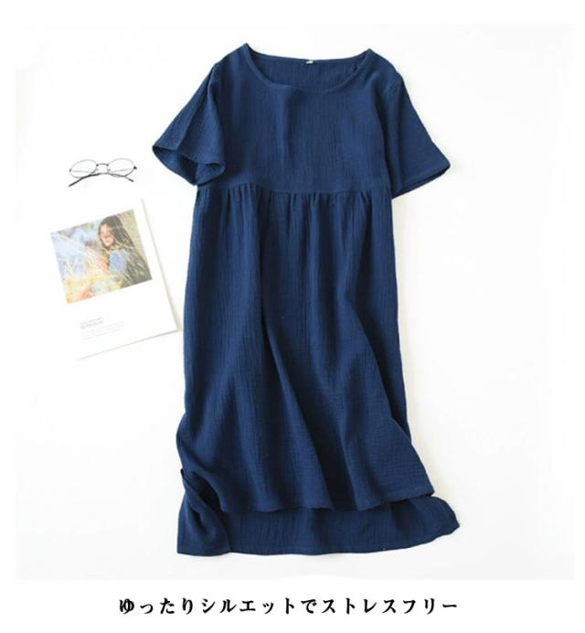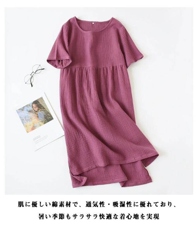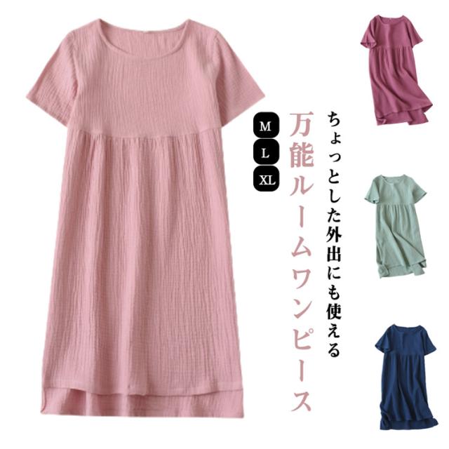 綿素材 ルームワンピース ルームウェア 半袖 レディース ナイトウェア ワンピース ゆったり 夏用 大きいサイズ ラウンドネック 部屋着 ルームワンピース 体型カバー 薄手 丸首 リラックス 無地 シンプル ナチュラル カジュアル 女性用