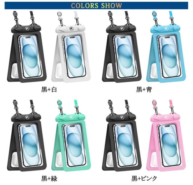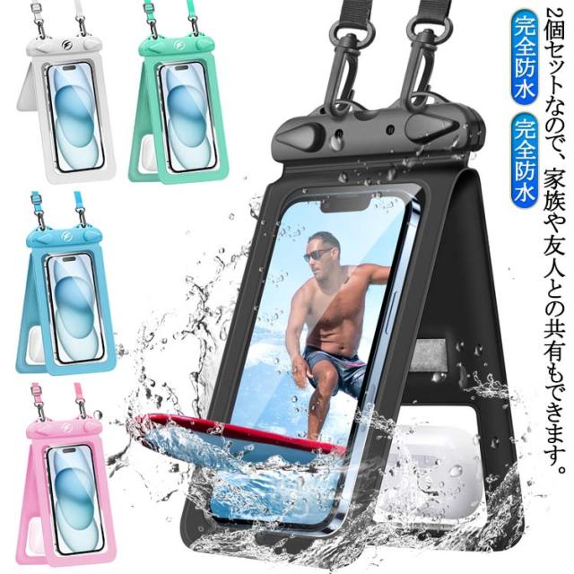 | 2個セットなので、家族や友人との共有もできます。 【便利な 2way 仕様 小物収納ポケット付 】 スマホ防水ケース と 小物入れ が一体になっていて、 小銭 や コイン を同時に持ち歩けます。 コインケース としても利用可です。 【 完全防水 IPX8 】 防水等級 は最高ランクの IPX8 。 携帯防水ケース や 防水ポーチ / 携帯防水カバー / 防水バック として便利に持ち運び可能です。 【 水中 での 撮影 や 操作可能 】 プール / 海 / ダイビング / お風呂 などでも使用可能な スマホ 防水ケース です。 水に 浮く ように厚みのある 丈夫 な設計になっています。 【 FACE ID や通話にも対応】 防水 スマホケース をつけたまま通話 や 顔認証 が可能です。首掛け やショルダー 掛けに対応した ストラップ が付属しています。 【 7.5 インチまでの スマホ 対応】 で最大 6.9 インチまで対応( 使用しているスマホケースの影響あり) iPhone 13 14 15 16 Pro や各種 Android ( アンドロイド ) の端末に対応しています。 | |