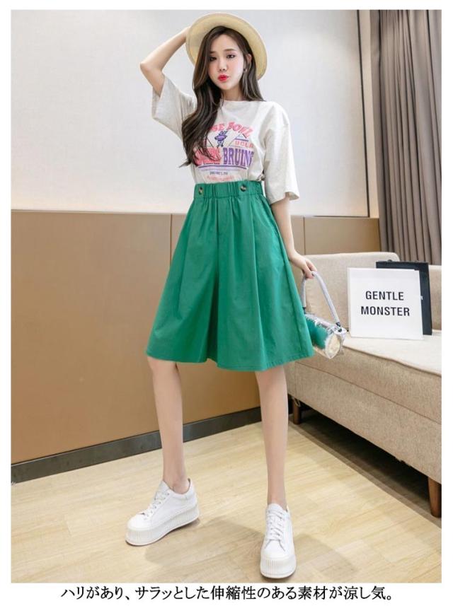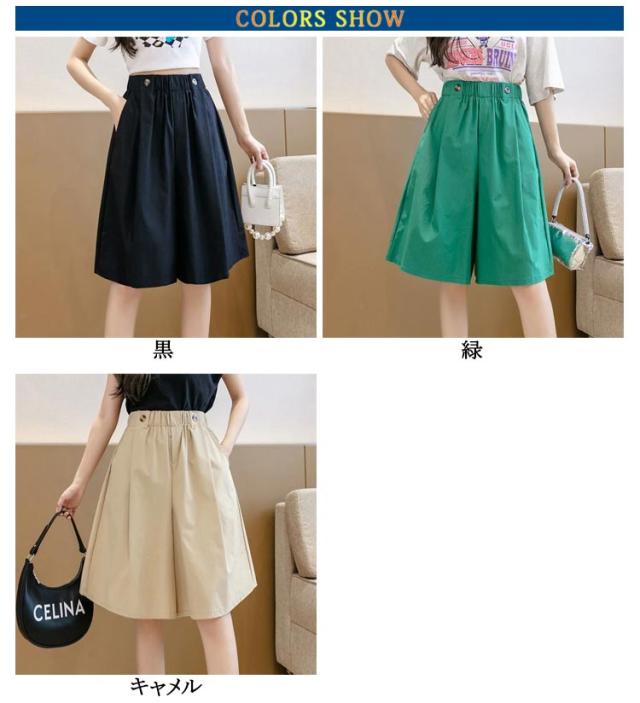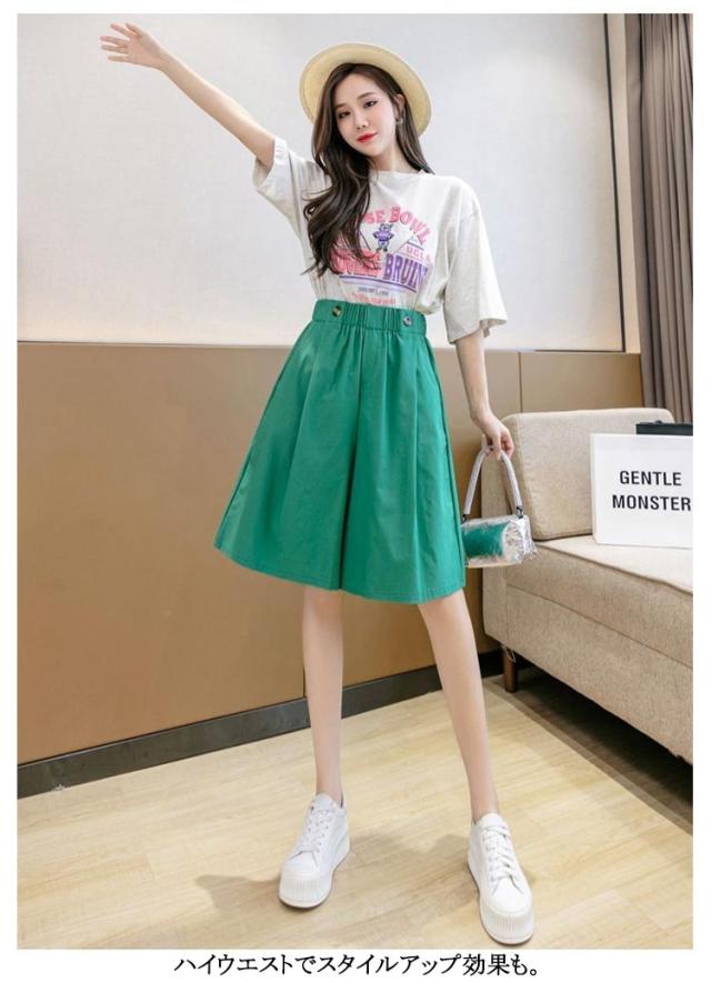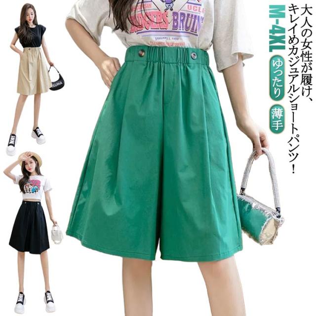 キュロットパンツ 2タイプ 薄手 カジュアル ショートパンツ レディース ウエストリボン 膝丈 Aライン ゆったり ガウチョパンツ スカーチョ 春 夏 短パン ボトムス ハイウエスト ハーフパンツ 大きいサイズ ウエストゴム