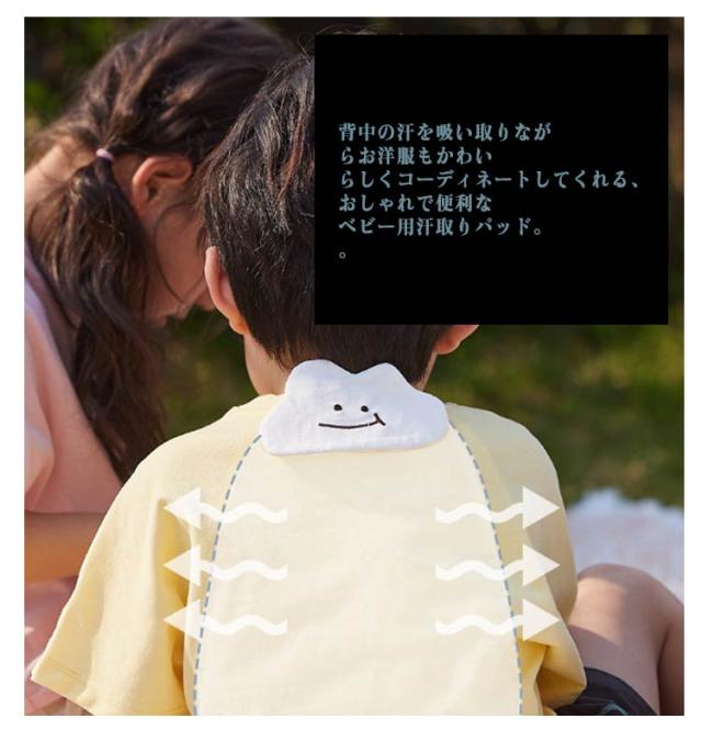 | 背中の汗を吸い取りながらお洋服もかわいらしくコーディネートしてくれる、おしゃれで便利なベビー用汗取りパッド。 ソフトで肌ざわりがよく、吸水性も抜群の汗とりです。汗をかいたらサッと引き抜くだけと使いやすく、赤ちゃんは快適。 背中から出しているような、癒し系のパンやケーキデザイン。お洋服を選ばず、男の子も女の子も使いやすい。 とにかく可愛いおしゃれなデザインで、SNSでも大人気!マンスリーフォトにもおすすめです。後ろ姿まで可愛く思い出を残したい方に。 赤ちゃんは夏も冬も汗をかくので、オールシーズンお使い頂けます。 | |