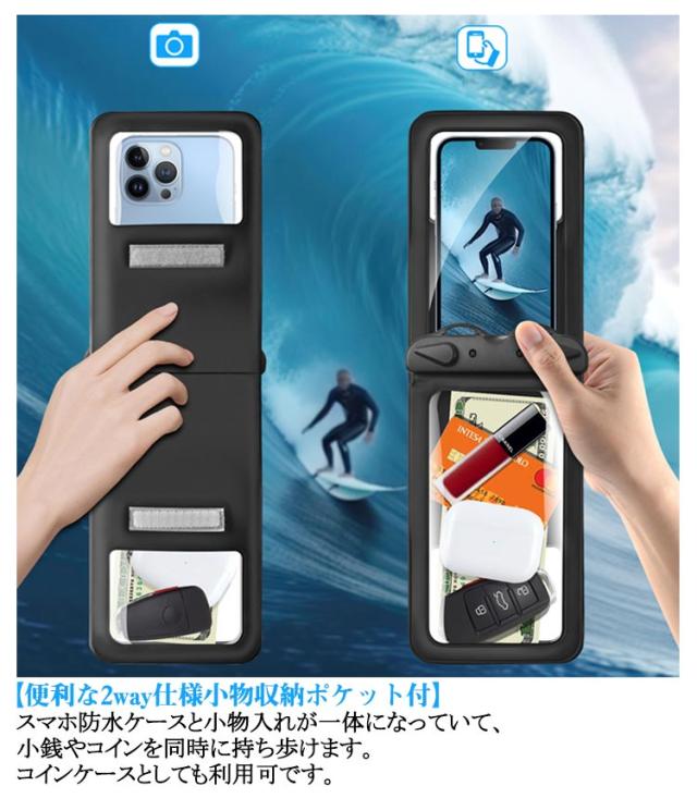 防水スマホケース 防水ケース ケース 2wayポケット小物収納付 スマホ ストラップ 黒 白 プール 完全防水 お風呂 海 付 スマホ防水ケース 2個セット IPX8 防水 携帯 可愛い スマホケース 防水 iPhone android 防水携帯ケース 防水カバー 小銭 コイン