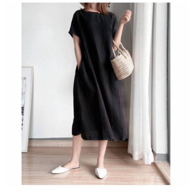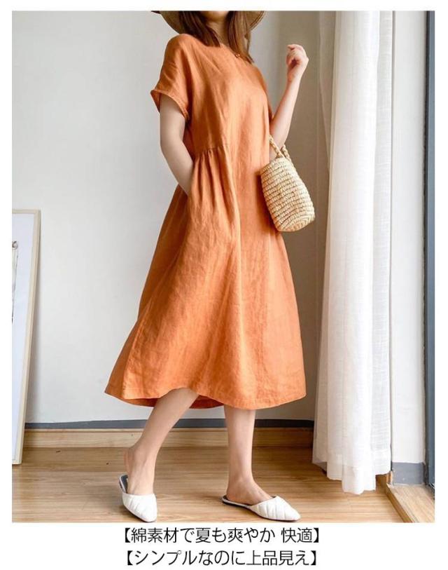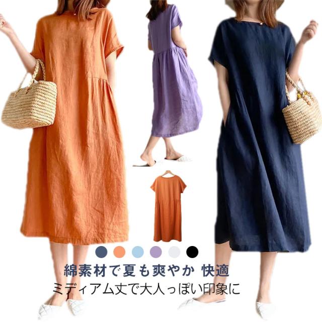 春夏 Aラインワンピース 綿ワンピース ロングワンピース ゆったりワンピ ゆったりワンピ 膝下丈 ワンピース 夏用 30代 40代 薄手 50代 母の日 ギフト