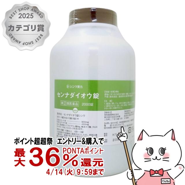 【超超祭 最大36%還元】【指定第2類医薬品】センナダイオウ錠シンワ 2000錠[伸和製薬][便秘薬][送料無料](6061207)