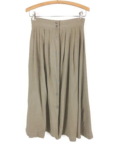 レディース 古着 90s USA製 CASUAL CORNER 無地 ソリッド フロントボタン レーヨン混 タック フレア ロング スカート M 古着
