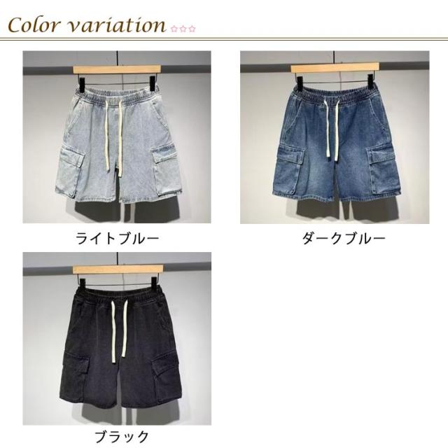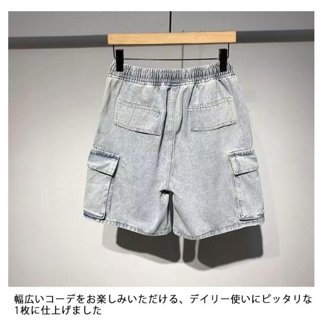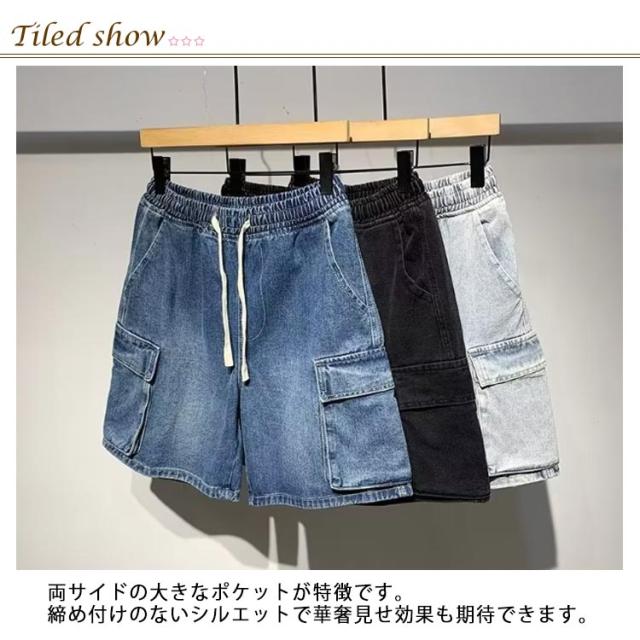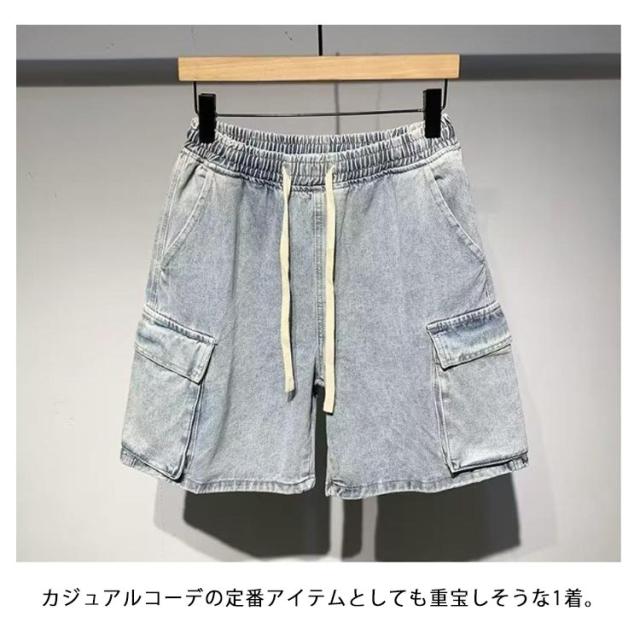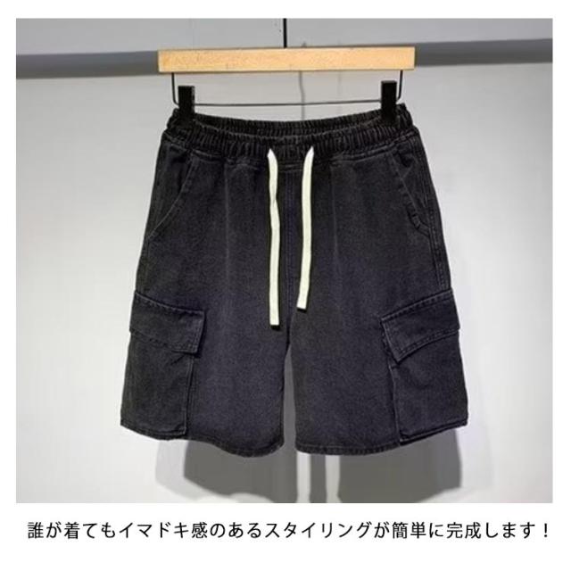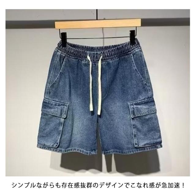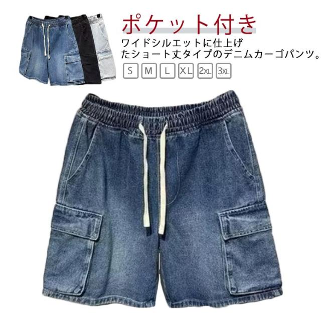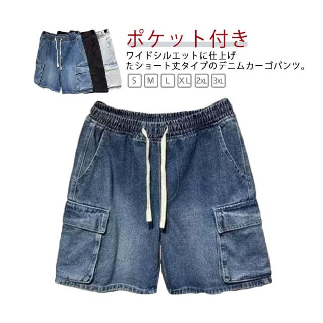デニム カーゴパンツ メンズ ハーフパンツ デニムパンツ 夏 ジーンズ ショートパンツ 半ズボン 短パン ポケット付き デニム 五分丈 ズボン ボトムス ワイドパンツ ジーパン ゆったり 大きいサイズ カジュアル 通学 ストリート おしゃれ 送料無料