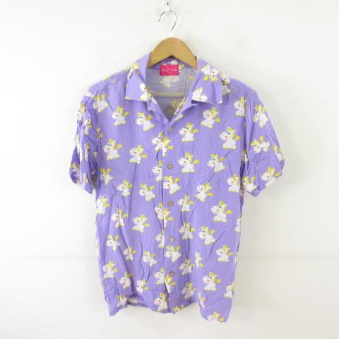 【中古】ディズニー Disney RESORT アロハシャツ 半袖 トイストーリー バターカップ 紫 M *T456 メンズ レディース