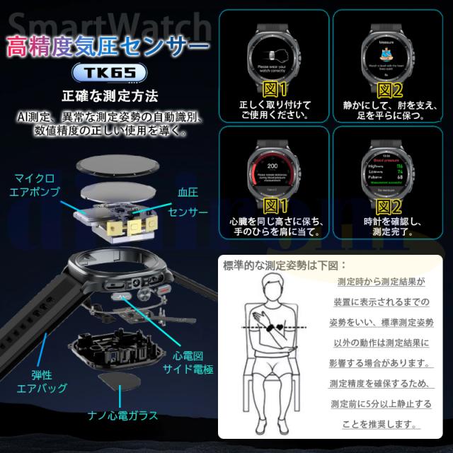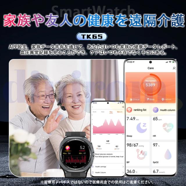 20%OFF スマートウォッチ 医療レベル血糖値 高精度エアバッグ血圧測定 ECG心電図 血中脂質 尿酸 体温 血中酸素 心拍数 健康管理 高齢者 日本製センサー 父の日