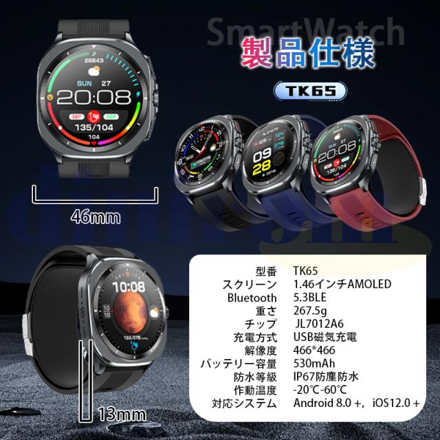ディスプレイ:1.46インチHDフルタッチスクリーン