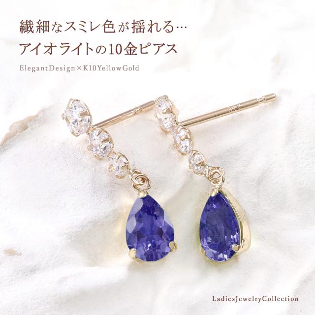 3月誕生石 ピアス アイオライト 宝石 天然石 アクセサリー プレゼント 記念日 誕生日 おしゃれ 10金 イエローゴールド 10K K10 可愛い 揺れる 雫形 雫型 ティアドロップ 女性 妻 嫁 彼女 可愛い 本物 3月 誕生石 本物 青紫 パープル ブルー 上品 雫 母の日 ギフト 2026