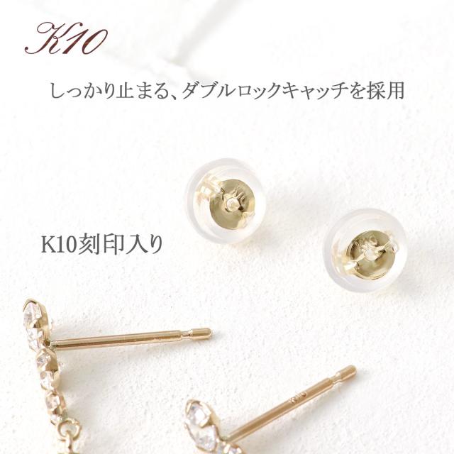 | 地金・素材 | ・アイオライト ・キュービックジルコニア ・地金:K10YG(10金イエローゴールド) ・ダブルロック キャッチ ※刻印箇所等は画像と異なる場合がございます。 |