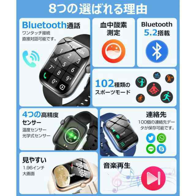 - 1.96インチ大画面スマートウォッチ