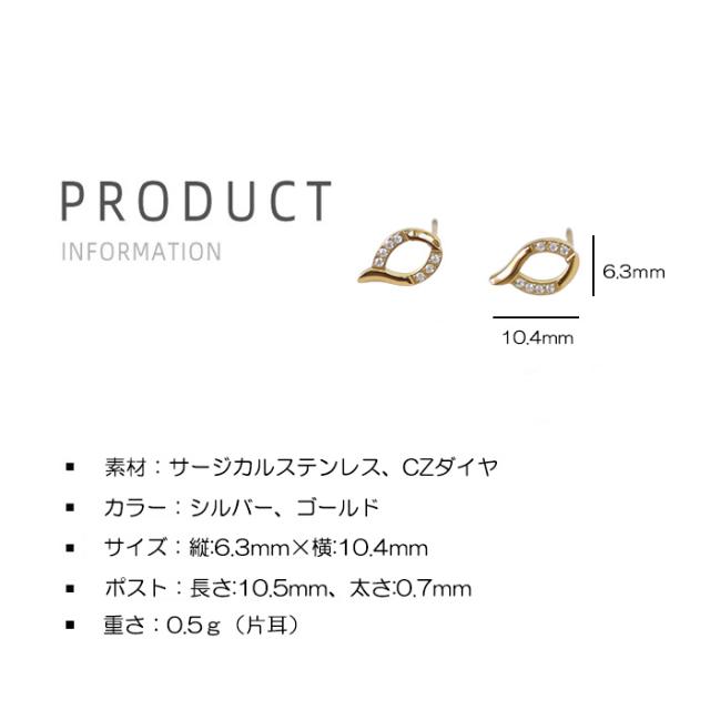 変色しにくい、変形しにくい、傷が付きにくい 大人気のステンレス素材のピアスです。 リーフモチーフでカーブラインに沿ってCZダイヤが並んでるデザインのピアス。 シンプルでエレガントにもカジュアルにもいけるデザインなので シーンを選ばず普段使いからフォーマル、行事などにもおススメです。 |