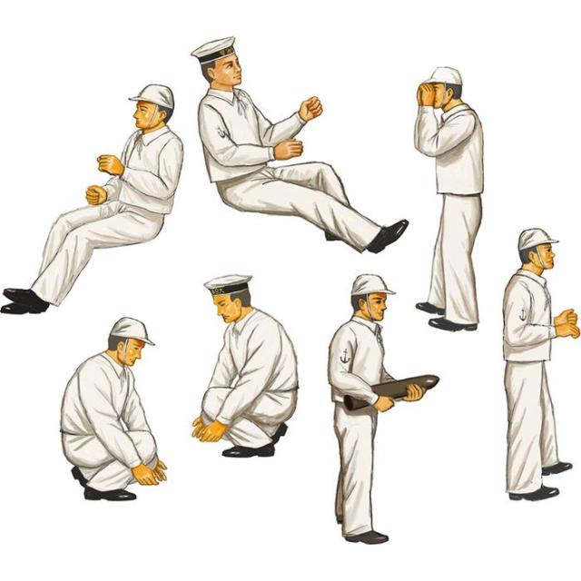 直立、敬礼、歩行、高角砲・機銃の操作、双眼鏡を覗く姿、弾薬を運搬する姿など合計11種類のポージングを再現できます。