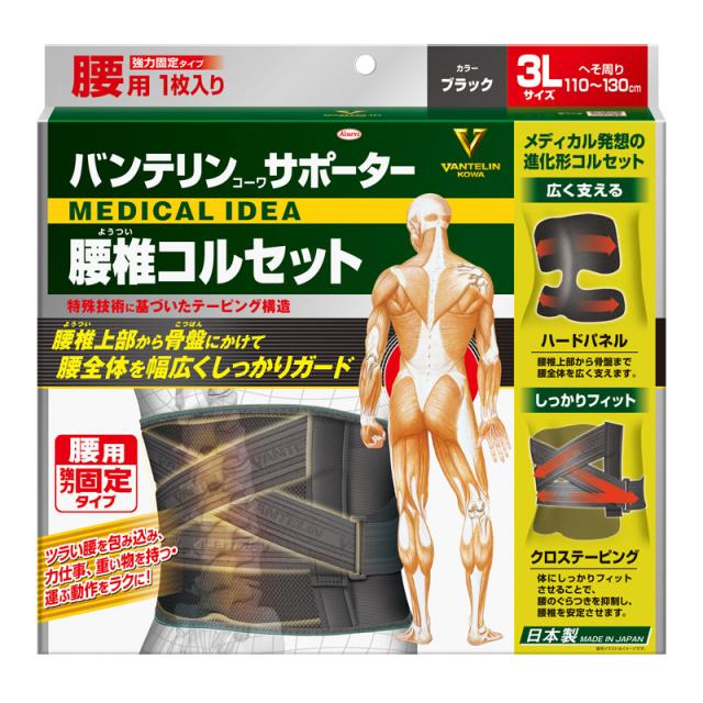 【3L】バンテリンコーワサポーター 腰椎コルセット ブラック ゆったり大きめ/3Lサイズ:110cm〜130cm(男女兼用・1枚入り)