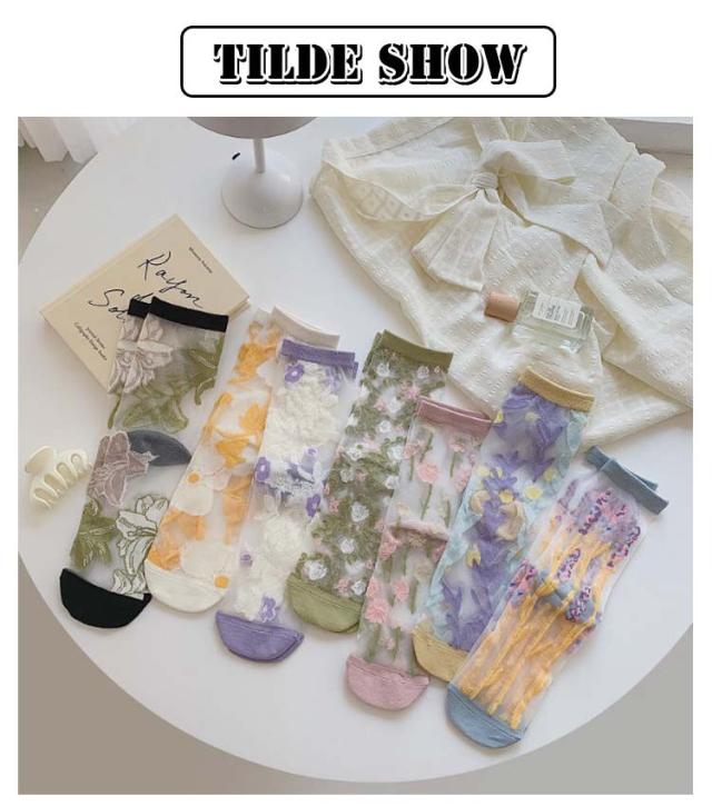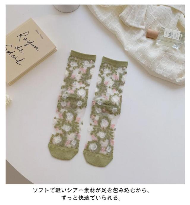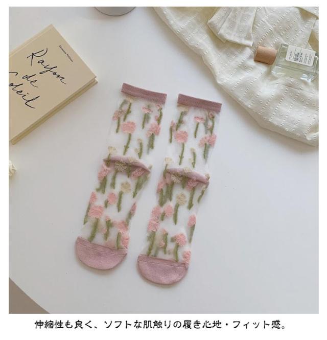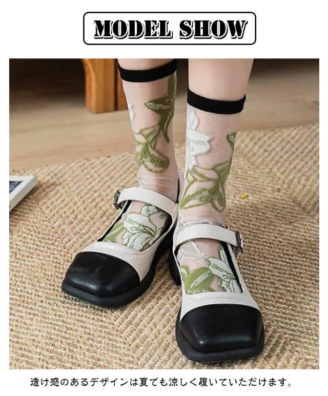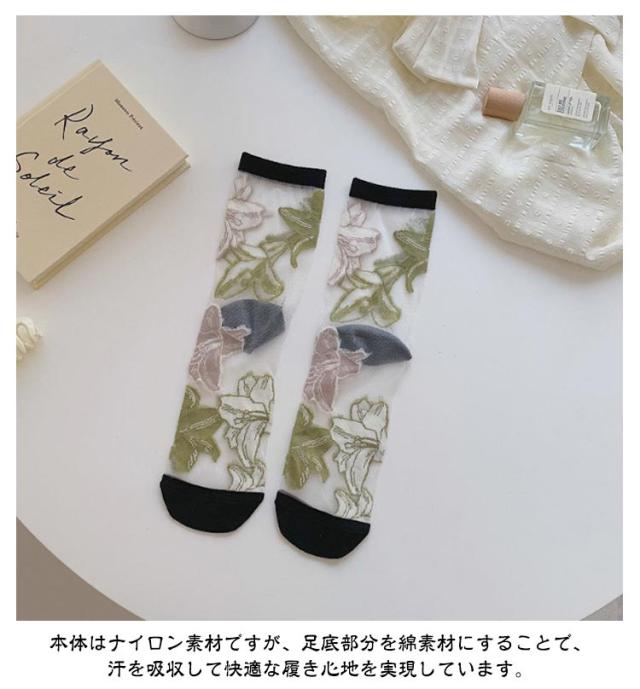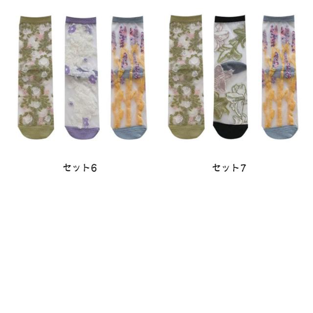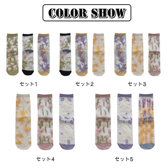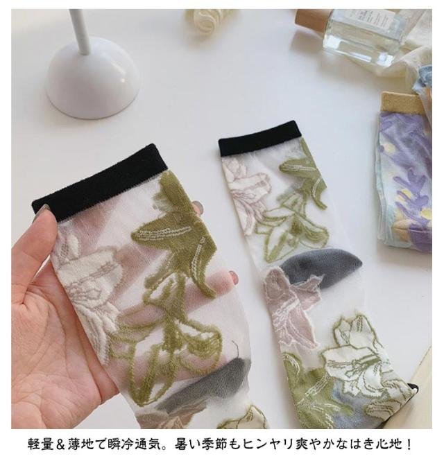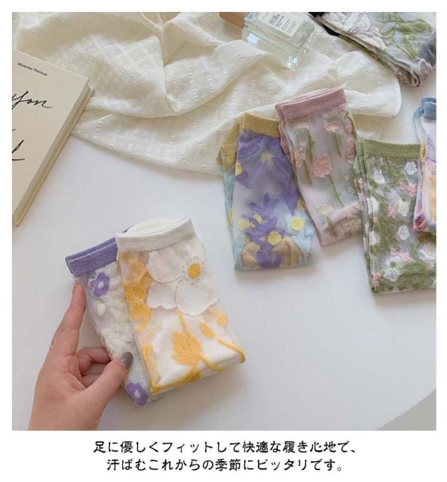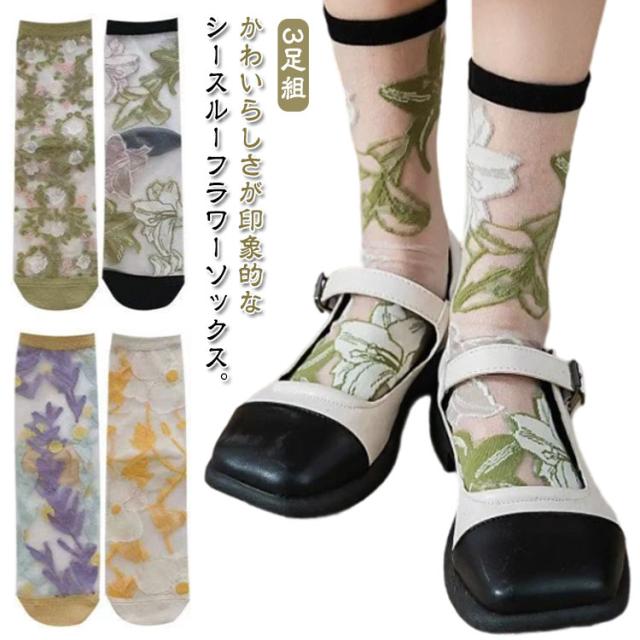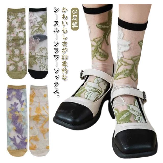 3足組 シースルー ソックス レディース 春 夏 秋 靴下 花柄 フラワー シアー ショートソックス ロークルー 透け感 レース 涼しい 蒸れない 女性 婦人 女の子 大人 可愛い カジュアル ガーリー おしゃれ 抗菌 防臭 綿 【送無】