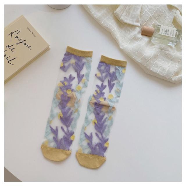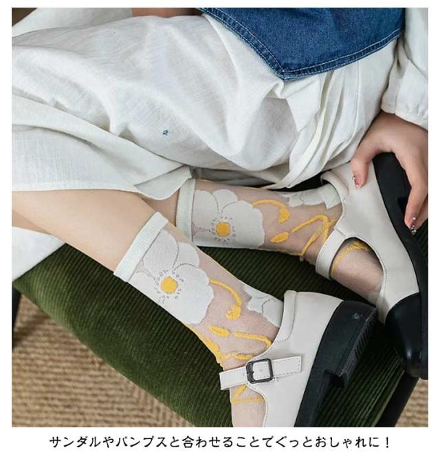 | かわいらしさが印象的なシースルーフラワーソックス。【3足組】 透け感のあるデザインは夏でも涼しく履いていただけます。 足に優しくフィットして快適な履き心地で、汗ばむこれからの季節にピッタリです。 本体はナイロン素材ですが、足底部分を綿素材にすることで、汗を吸収して快適な履き心地を実現しています。 サンダルやパンプスと合わせることでぐっとおしゃれに! ソフトで軽いシアー素材が足を包み込むから、ずっと快適でいられる。 伸縮性も良く、ソフトな肌触りの履き心地・フィット感。 軽量&薄地で瞬冷通気。暑い季節もヒンヤリ爽やかなはき心地! | |
