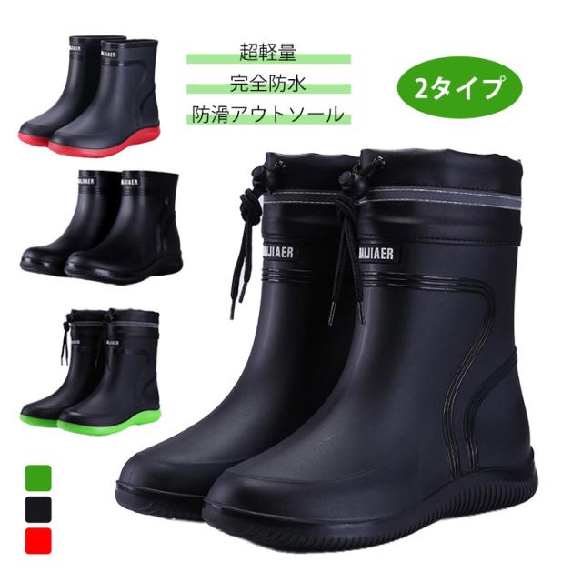 クローズド レインブーツ 履きやすい ミドル スタイル メンズ レインブーツ 長靴 レインブーツ 防水 丈 雨 靴 おしゃれ 滑り止め 男性用 オーバー 作業用 ゴム 男女兼用 軽量 ブーツ ミドル シューズ アウトドア 滑りにくい 雨具 釣り