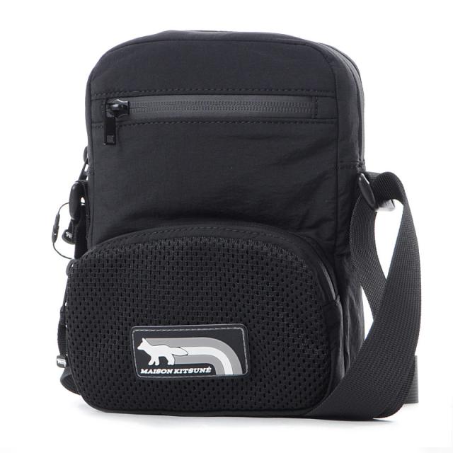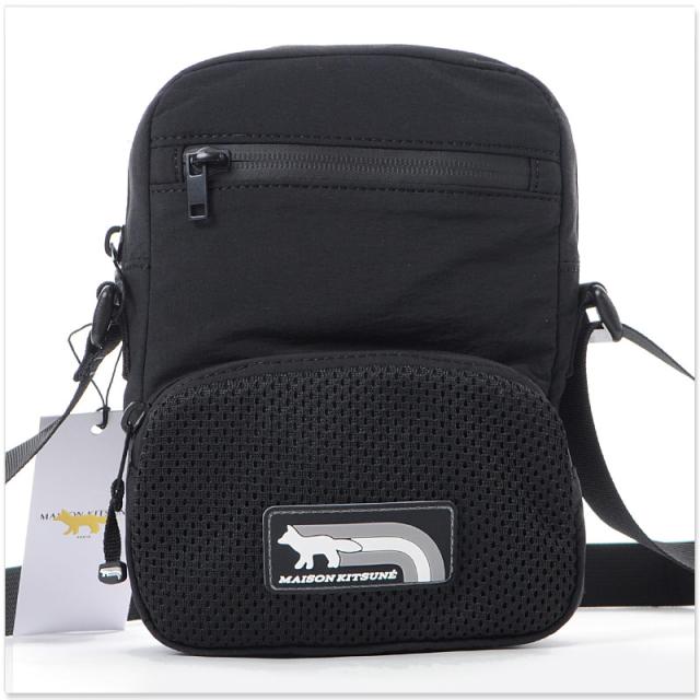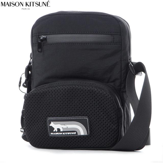 メゾンキツネ MAISON KITSUNE ショルダーバッグ メンズ レディース FLASH FOX CROSSBODY POUCH OM05174 WQ4034 斜めがけバッグ ナイロン 軽量 ミニバッグ ブラック 黒 旅行 通勤 通学 ブランド 人気 おしゃれ フェス アウトドア 送料無料