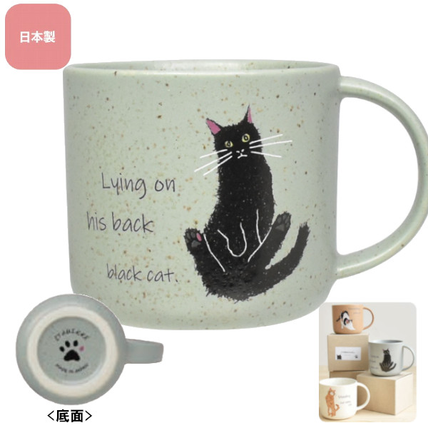 癒されるネコの仕草が描かれたマグカップです。