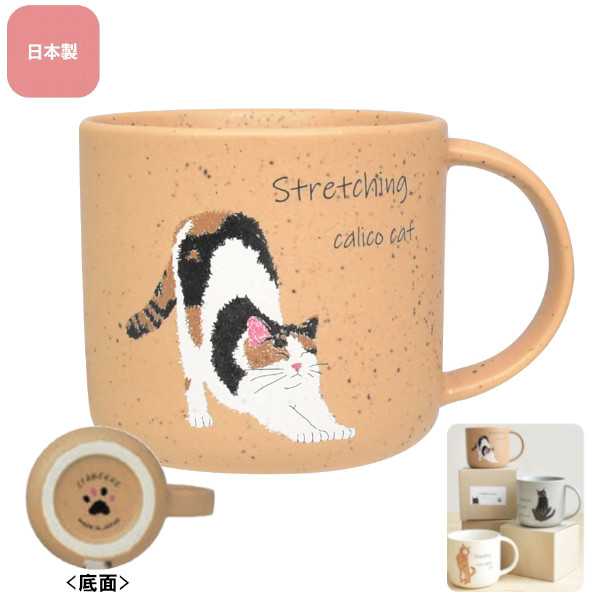 癒されるネコの仕草が描かれたマグカップです。