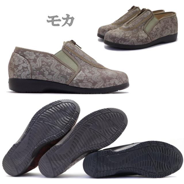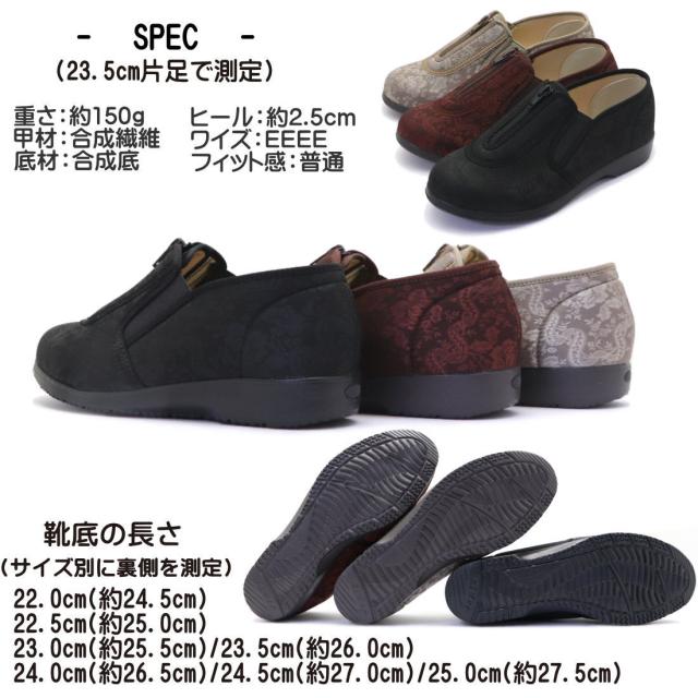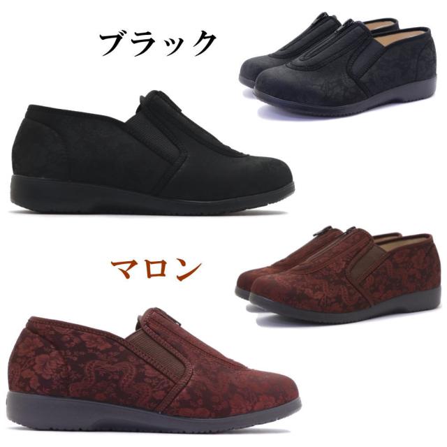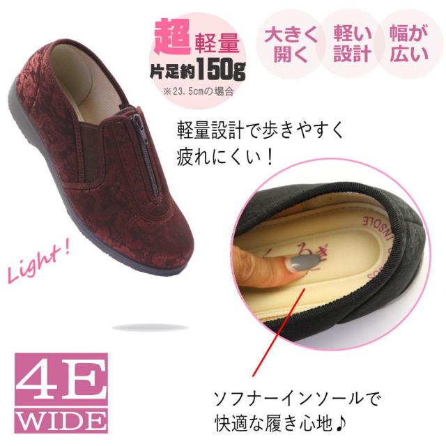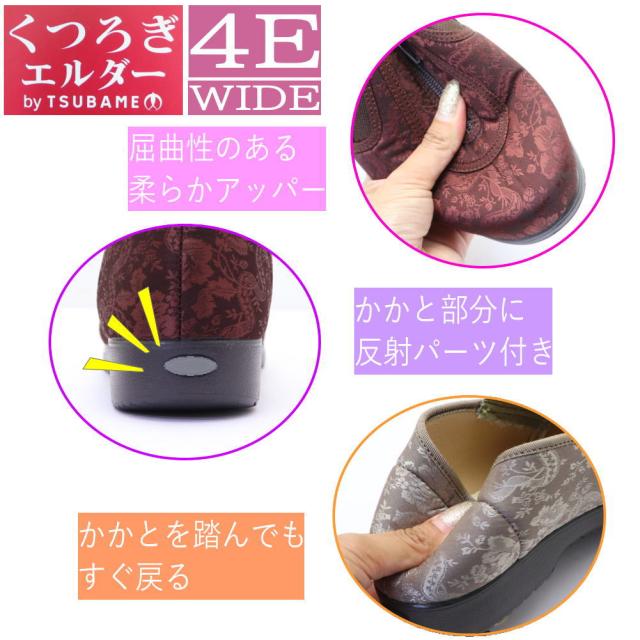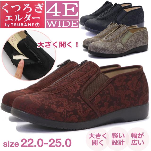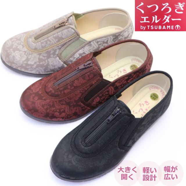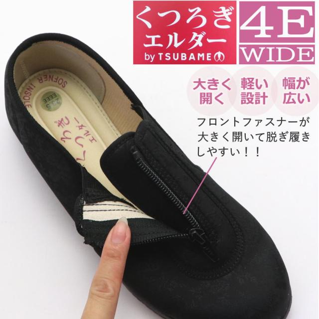 くつろぎエルダー 介護シューズ レディース ファスナー 幅広 4E 軽量 かかとが踏める キックバック リハビリシューズ 広島化成 TUBAME No.329