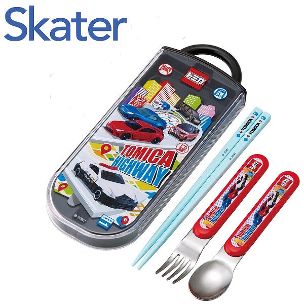 メール便送料無料 スライド式トリオセット トミカ スケーター TACC2AG 日本製 スプーン フォーク 箸箱 キャラクター 食洗機対応 お弁当 給食 ランチ カトラリー かわいい 子供 幼稚園 入園 入学 Skater タカラトミー