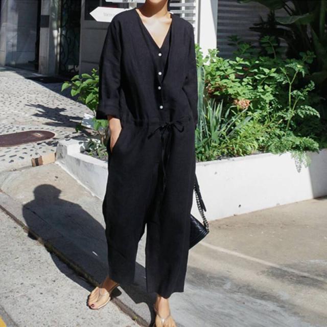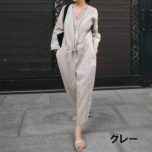 オールインワン レディース 2色 Vネ オールインワン サロペット 続々入荷中 ブラック グレー S M L XL