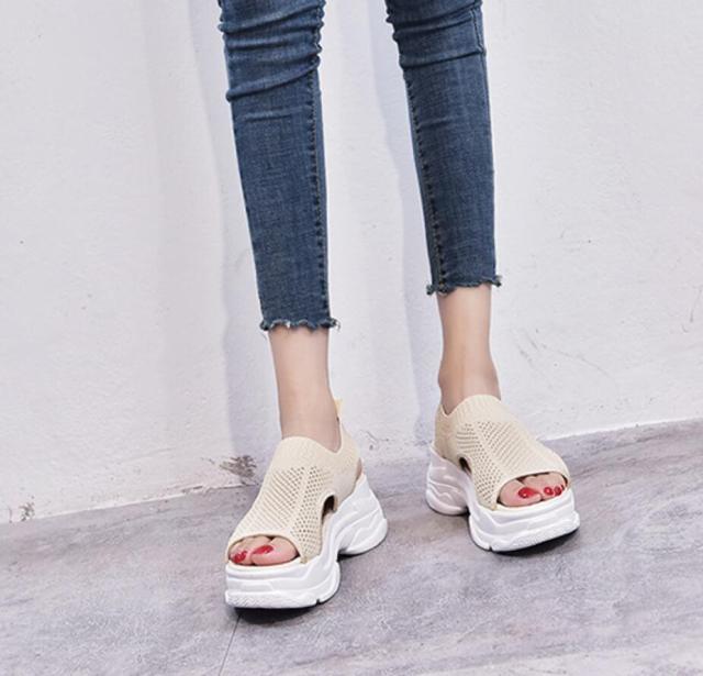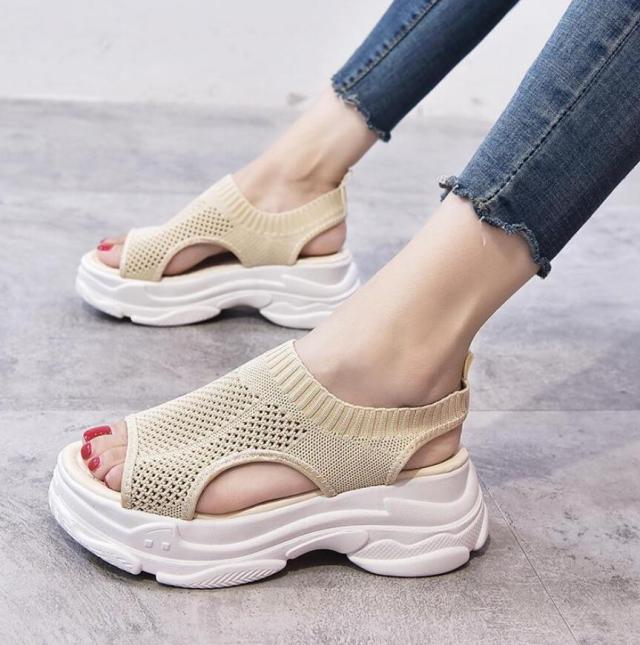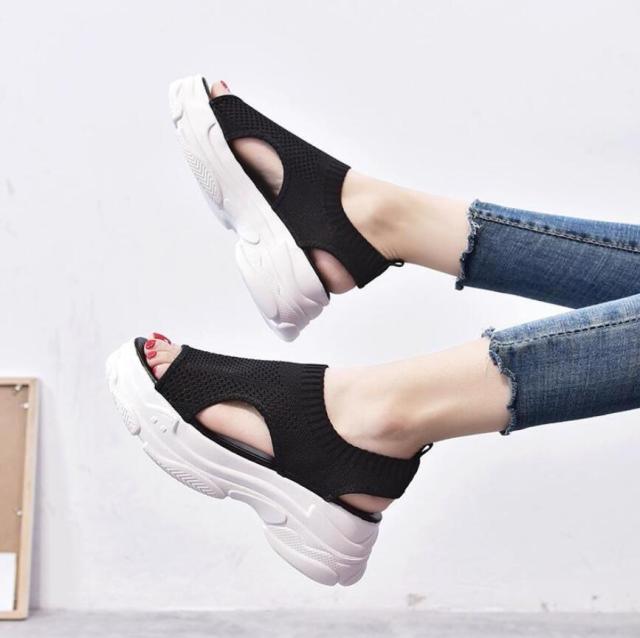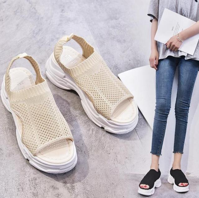 スポーツサンダル レディース ニット サンダル 歩きやすい 厚底 スポサン メッシュ シューズ カジュアル 靴 厚底サンダル グルカサンダル フラットサンダル ウェッジソール 通気性 軽量 痛く 快適