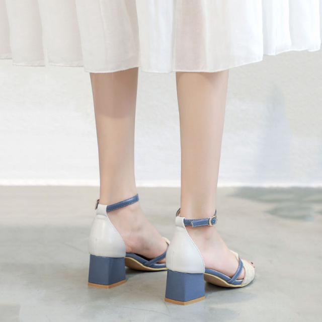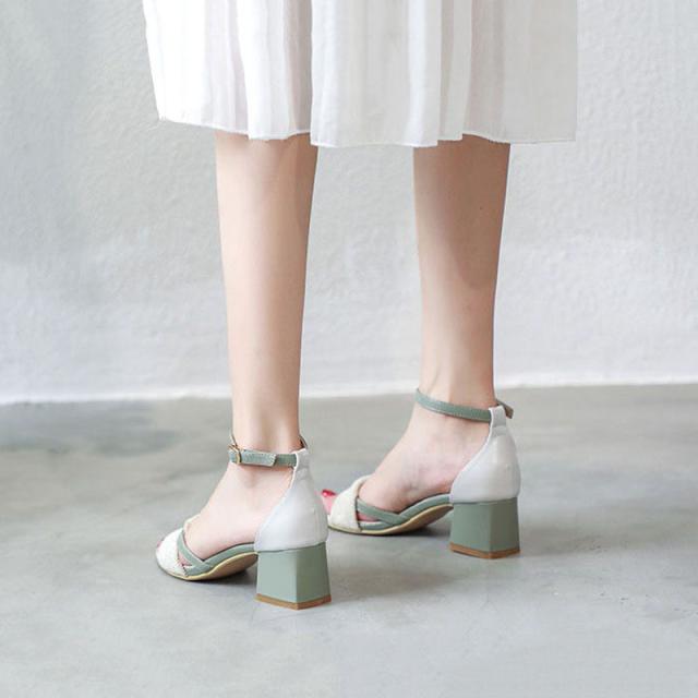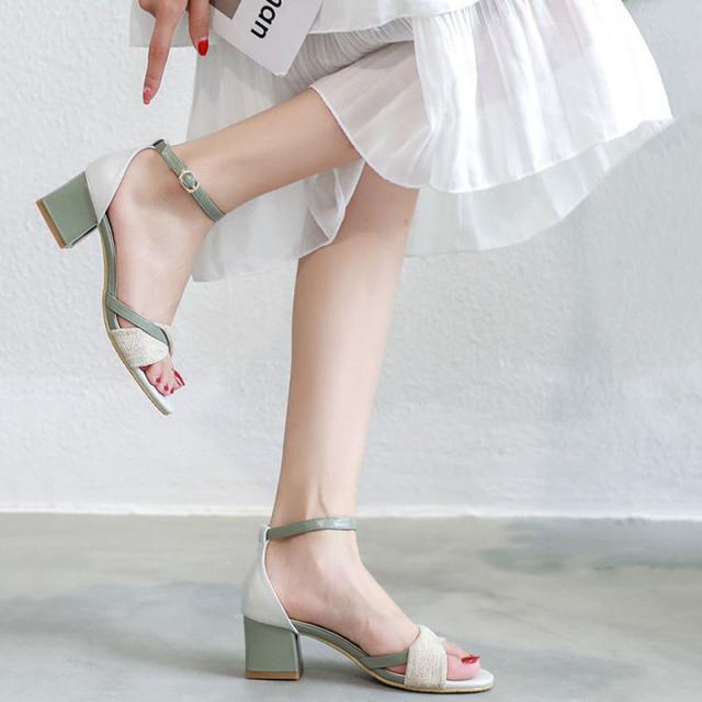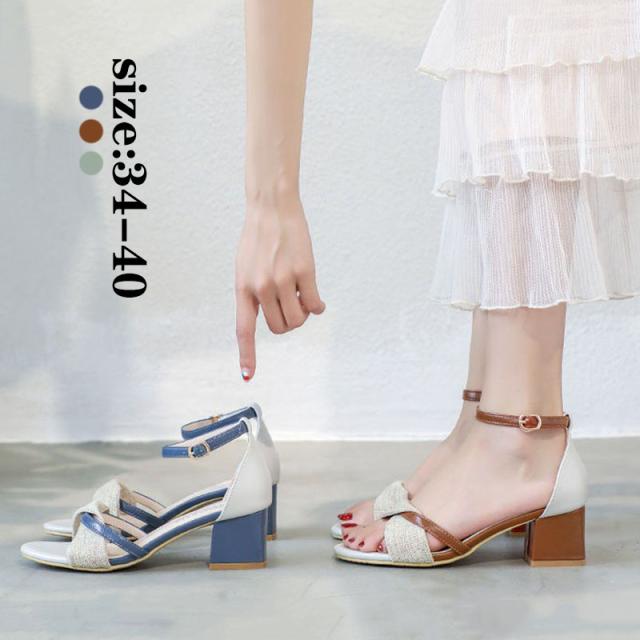 サンダル レディース シューズ 夏 太 レディース靴 サンダル ストラップ 新作 ブルー ブラウン グリーン 34 35 36 37 38 39 40