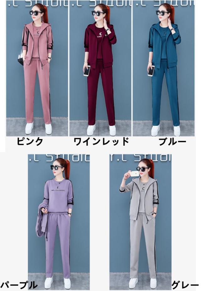 セットアップ レディース ジャージ 秋 レディースファッション 特集 ピンク グレー パープル ブルー ワインレッド Mサイズ Lサイズ XLサイズ 2XLサイズ 3XLサイズ 4XLサイズ