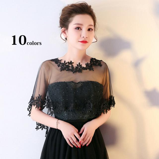 10色入 結婚式 ショール ボレロ パーティボレロ パーティーショール 結婚式ボレロ フォーマルショール ビジューショール PJ021Y レッドブラックオフホワイト刺繍 ストール