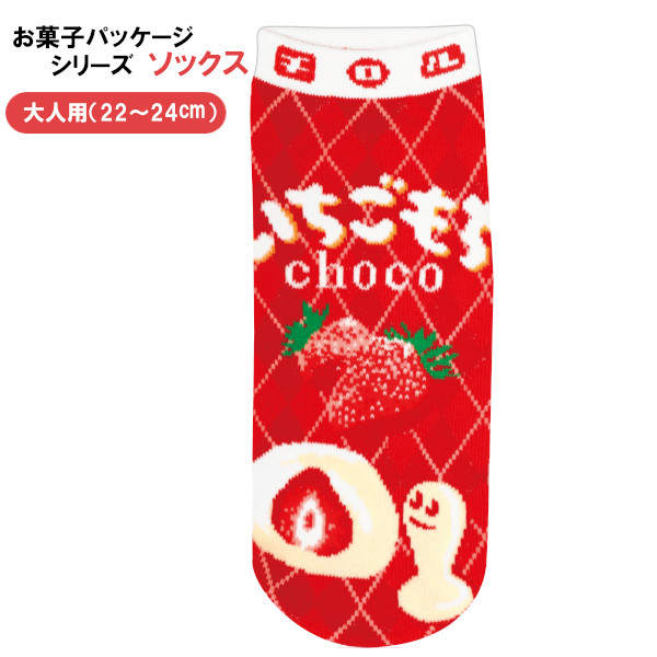 メール便発送 ソックス チロルチョコいちごもち JGS0882 キャラクター 22-24cm くつした 靴下 プレゼント 【ラッピング不可】