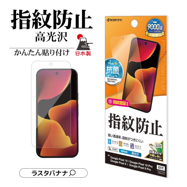 Google Pixel 10 Google Pixel 10Pro Google Pixel 9 Google Pixel 9Pro フィルム 全面保護 高光沢 高透明 クリア 指紋防止 抗菌 日本製 指紋認証対応 簡単貼り付けガイド グーグルピクセル 保護フィルム G5056P10 ラスタバナナ