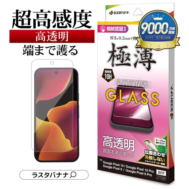Google Pixel 10 Google Pixel 10Pro Google Pixel 9 Google Pixel 9Pro ガラスフィルム 全面保護 高光沢 高透明 クリア 0.2mm 薄型 極薄 高感度 硬度10H 指紋認証対応 簡単貼り付けガイド グーグルピクセル 保護フィルム GP5058P10 ラスタバナナ