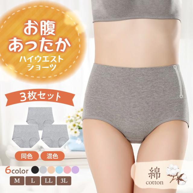 ハイウエストショーツ 綿 深め すっぽりショーツ おへそ すっぽり ハイウエスト下着 女性用パンツ 綿 深ばき ハイウェストショーツ 下着 レディース 無地 大きいサイズ 深履き 深ばきショーツ 3枚セット 女性 美尻 パンティー