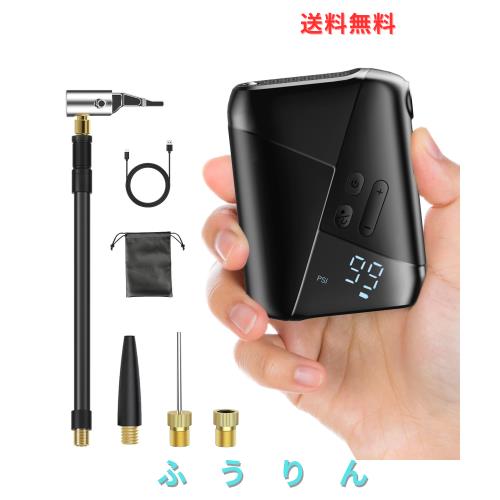 自転車 空気入れ 電動 コードレス エアーポンプ 小型 軽量 自動停止 空気圧測定 最大150PSI 米式 仏式 エアーコンプレッサー 車 バイク
