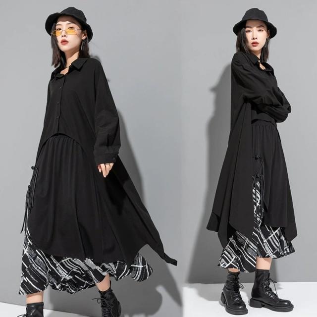 トップス シャツ ブラウス レディース 長袖 ロング モード pLegLad店 フィッシュテール 前開き カジュアル きれいめ 大人女子 かわいい ゆったり ブラック 春 秋 30代 20代