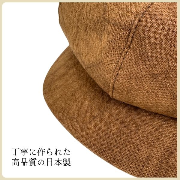 RETTER 柿渋染め リネン キャスケット M〜Lサイズ 日本製 キャスケット帽 8ピース 8枚はぎ 八方 キャス 麻100% サイズ調整 薄手 通気性抜群 紫外線対策 UVケア 日よけ メンズ 男性 紳士 Made in Japan 春 夏 秋 日よけ 帽子 レッター 2502021