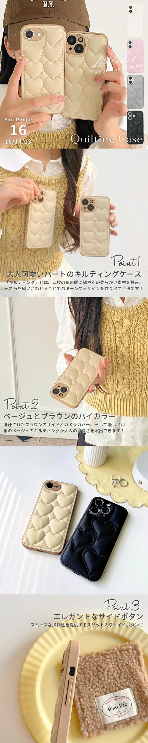 iPhone16 ケース iPhone16e ケース iPhone15 ケース iPhone13 ケース 12 キルティング スマホケース 韓国 iPhoneケース かわいい おしゃれ レザー 大人かわいい もこもこ くすみカラー ハート 耐衝撃 カメラカバー カメラ保護