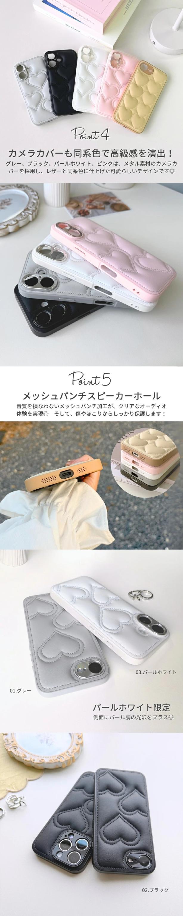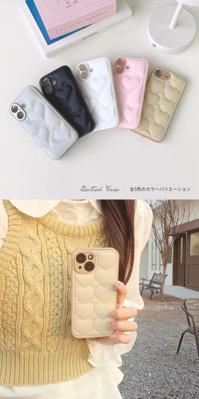 iPhoneケース 韓国 おしゃれ ハート キルティング レザー
