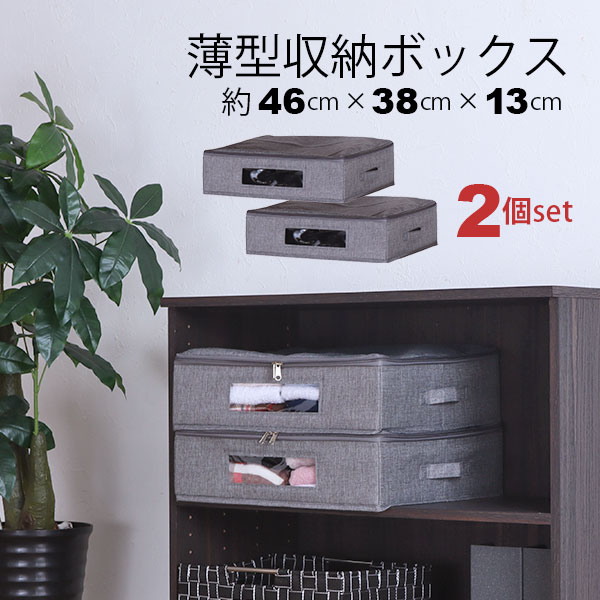 ベッド下収納 ふた付き 取っ手付き 幅46cm 奥行38cm 高さ13cm 衣類 収納ケース 中身が見える 収納ボックス 薄型 46×38 ベッド下 収納 おしゃれ 窓付き 収納ボックス 隙間収納 衣装ケース 布製 スリム ファスナー付き ホコリ対策 軽量 インナーボックス グレー 1個単品