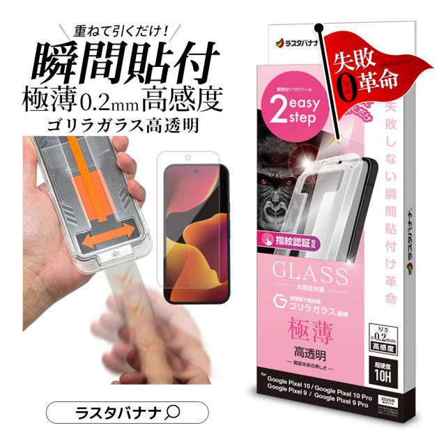 【送料無料】Google Pixel 10 Google Pixel 10Pro Google Pixel 9 Google Pixel 9Pro ガラスフィルム 全面保護 高光沢 高透明 クリア 薄型 高感度 極薄 ゴリラガラス採用 0.2mm 硬度10H 貼付革命 瞬間貼り 失敗しない瞬間簡単貼り付け レボリューション 指紋認証対応 グーグルピクセル 保護フィルム MTK5062P10 ラスタバナナ