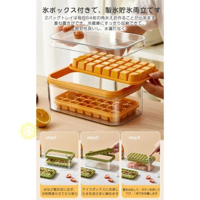 【ワンタッチで氷が取れる】 新型製氷皿 製氷器 シリコン 大容量 32/64個取り アイストレー 製氷機 氷のかたまり 氷作る容器 収納ボックス 一部 おしゃれ 蓋付き 取り出し簡単 柔らかい 角氷 飲み物作り