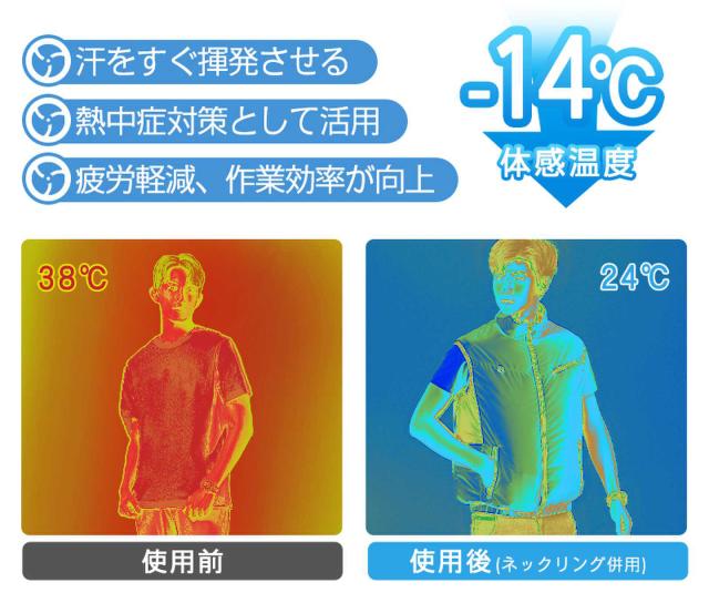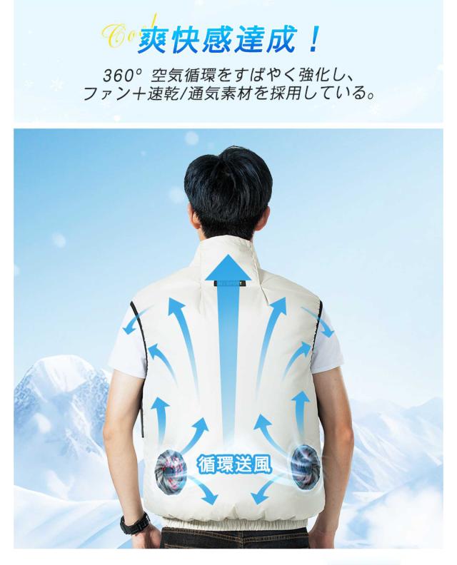 強力な風で「薄?軽」ベストの内部に空気の循環を吹き出し、